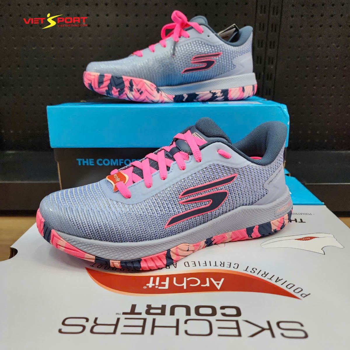 VIETSPORT – địa chỉ uy tín cho cộng đồng Pickleball & Tennis tại Việt Nam. Liên hệ Zalo 079.712.6789 để được tư vấn và nhận ưu đãi khi mua Giày Skechers Viper Court Pro 2.0 Grey Lavander chính hãng.